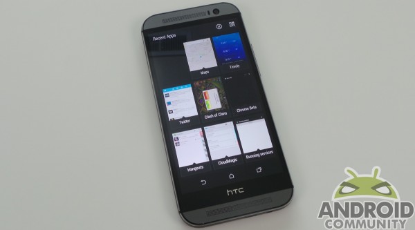 Jest to głównie zmiana interfejsu, ale z Sense wygląda lepiej. Po wciśnięciu przycisku ostatnio otwartych aplikacji na HTC One M8, miniaturki tych aplikacji pojawiają się w szeregu i mogą być łatwo usunięte. Czysty Android prezentuje ostatnio otwarte aplikacje w formie pionowej listy z większymi miniaturkami jednak z ograniczonym widokiem ostatnio używanych aplikacji.